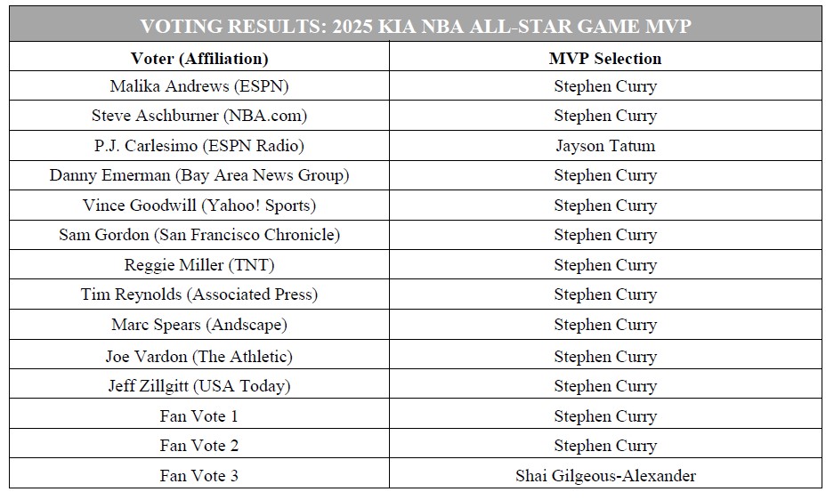 最后,庫里贏得了14票中的12票,并以絕對優(yōu)勢當選為舊金山AMVP,贏得了科比杯,并在職業(yè)生涯中第二次當選為全明星MVP。